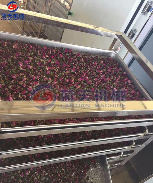 玫瑰花的商品花分為花苞和鮮花,在烘干工藝的程序上有所不同,下面我們結(jié)合實(shí)際的現(xiàn)場情況做一次整個(gè)工藝流程的介紹。