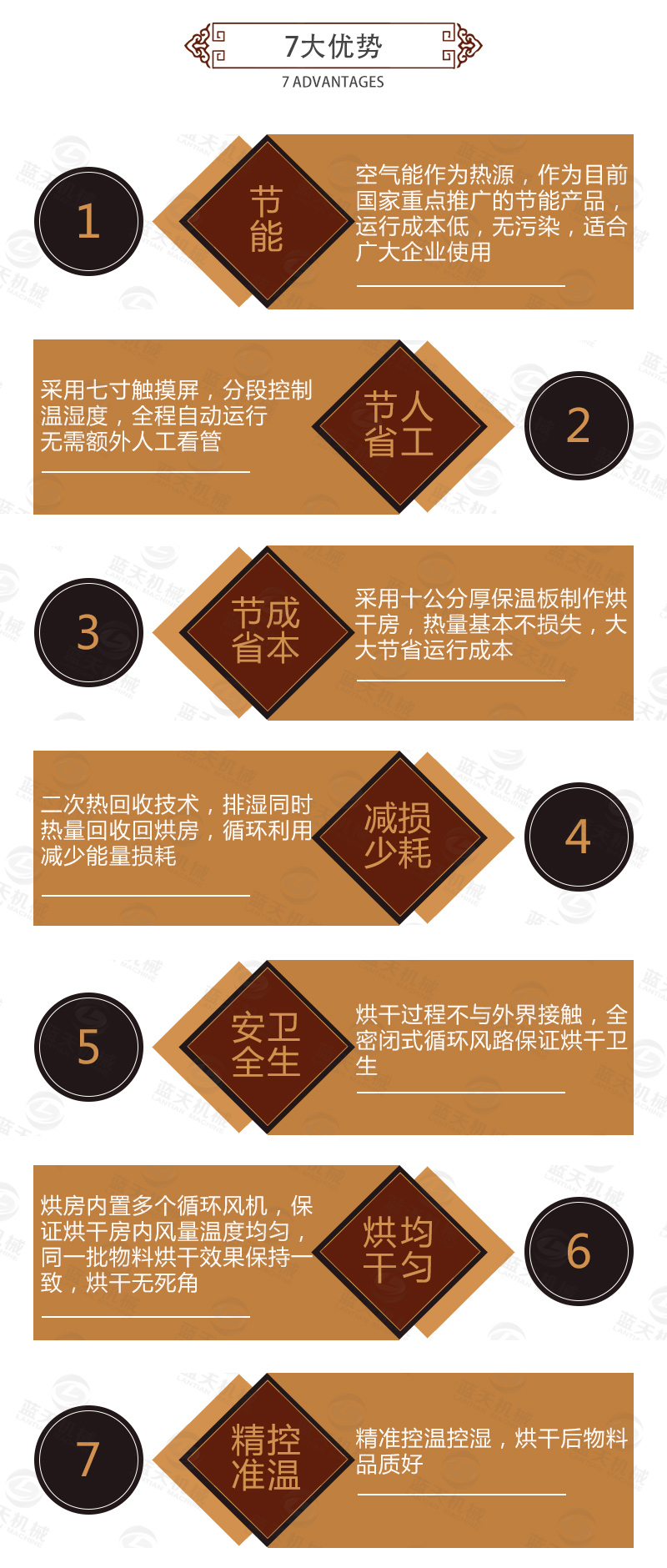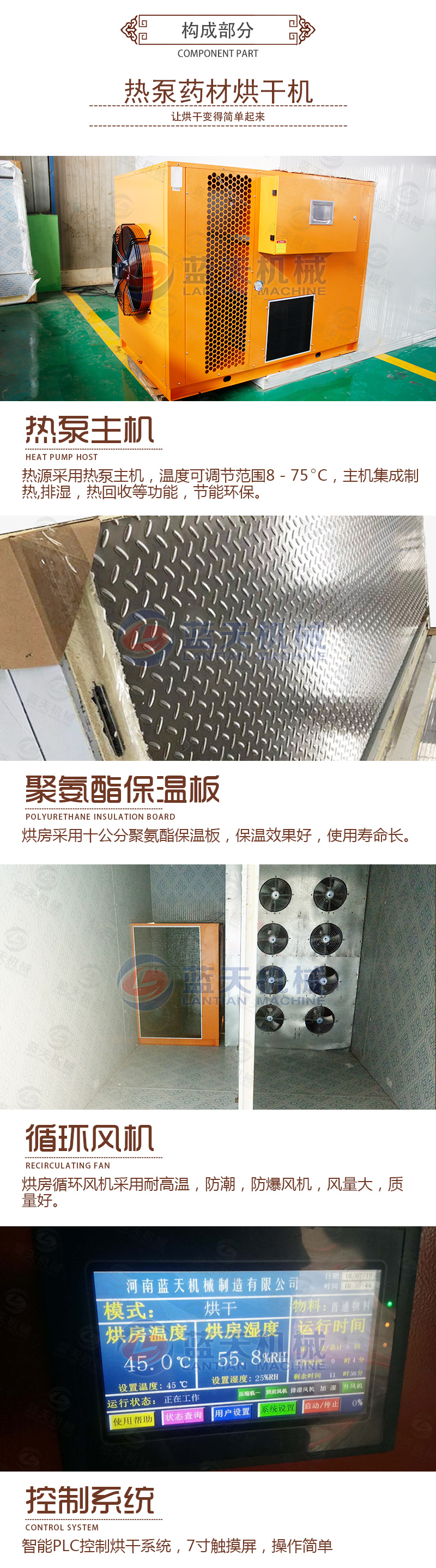 結合以上問題,新的八角烘干機出現了,這種設備是通過少許電能驅動壓縮機做功,從而使系統中的冷媒吸熱放熱來實現熱量從高位轉移到低位的新能源設備,是一種氣流干燥設備,節能環保,智能化控制,不再看天氣,不再需要人守著,一鍵啟動,自動烘干,自動停機。