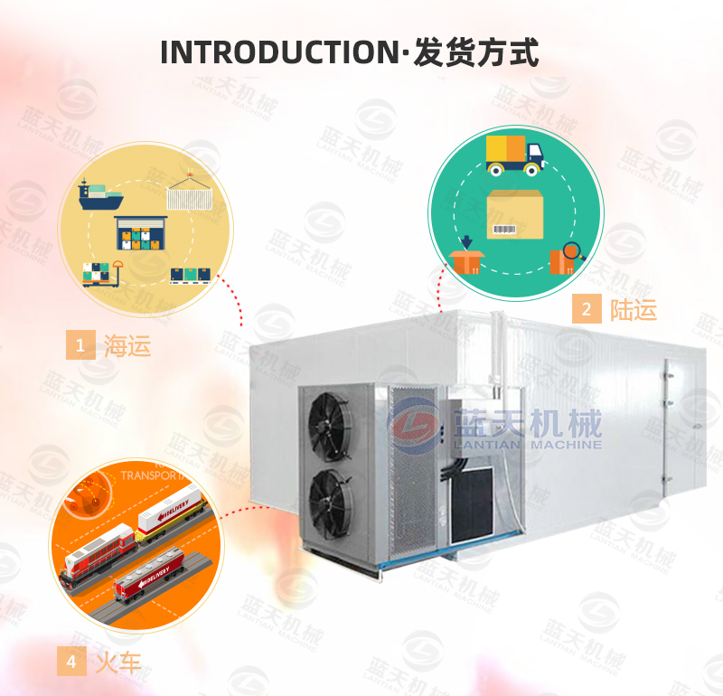 剝好的龍眼肉上托盤鋪好,保持好均勻的鋪放密度與托盤間距。托盤可采用不銹鋼車架與竹托盤的形式。在進入空氣能箱式龍眼烘干機設備前,根據(jù)空氣能龍眼烘干機智能PLC屏幕的提示,選好烘干除濕的模式,設置好溫度、濕度、風速等數(shù)據(jù),進行分段控制。